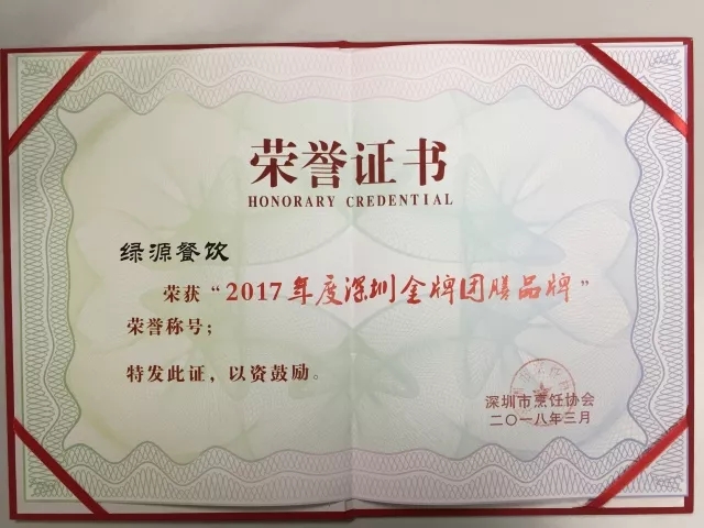 近日,深圳市烹飪協(xié)會第二屆第四次會員大會在深圳召開,會議對2017年度優(yōu)秀會員單位進(jìn)行了表彰,中廣核服務(wù)集團(tuán)旗下深圳綠源餐飲管理有限公司從眾多團(tuán)膳企業(yè)中脫穎而出,獲得“2017年度深圳金牌團(tuán)膳品牌”榮譽稱號。
