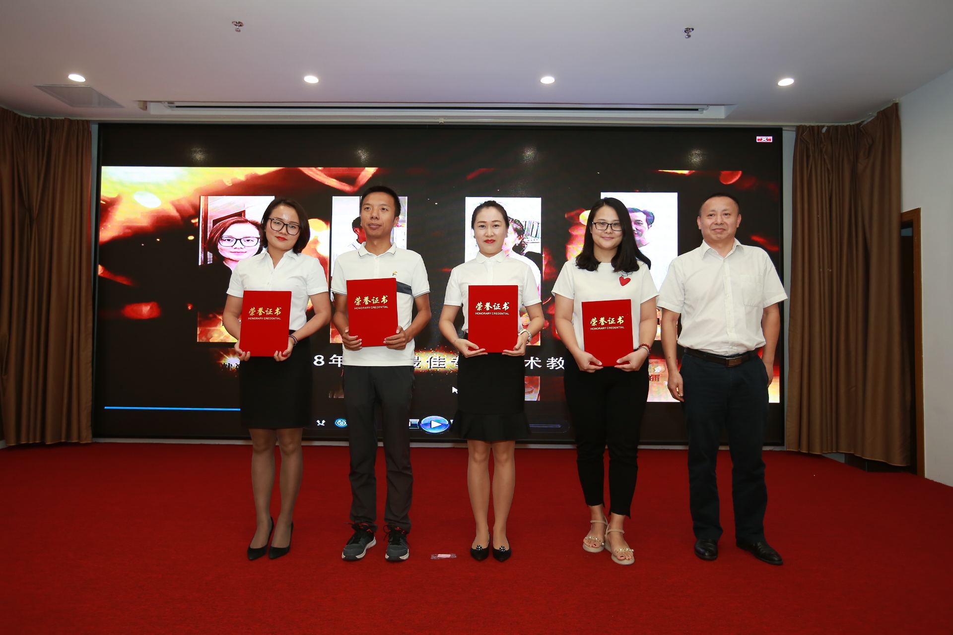 ▲公司黨委委員、總經(jīng)理助理劉凱為受表彰的“最佳專業(yè)技術(shù)教員”頒發(fā)證書,獲獎個人分別為:人力資源服務中心陳乃東、機電公司李展志、機電公司黃安理、白鷺健康公司韓娟。