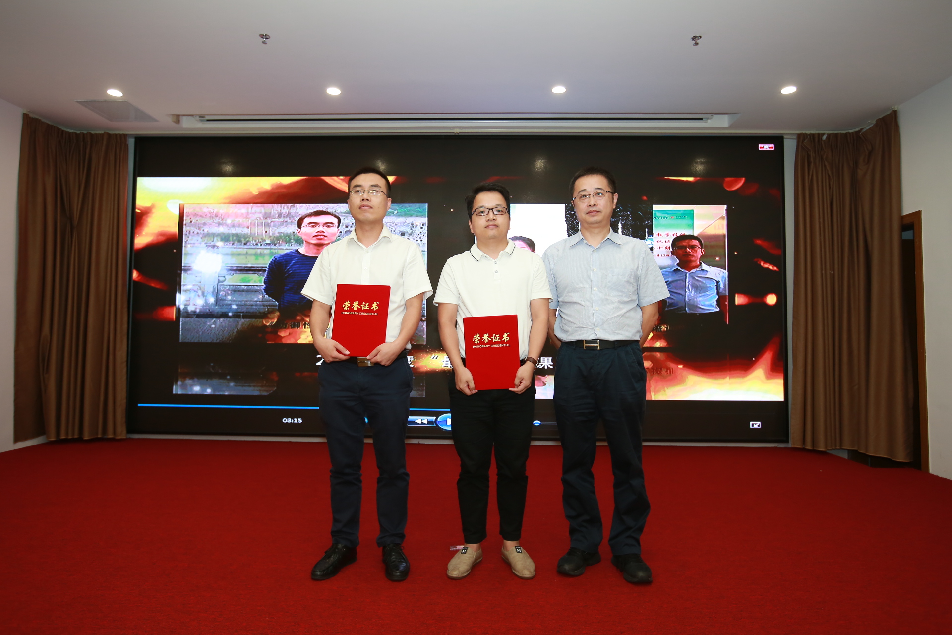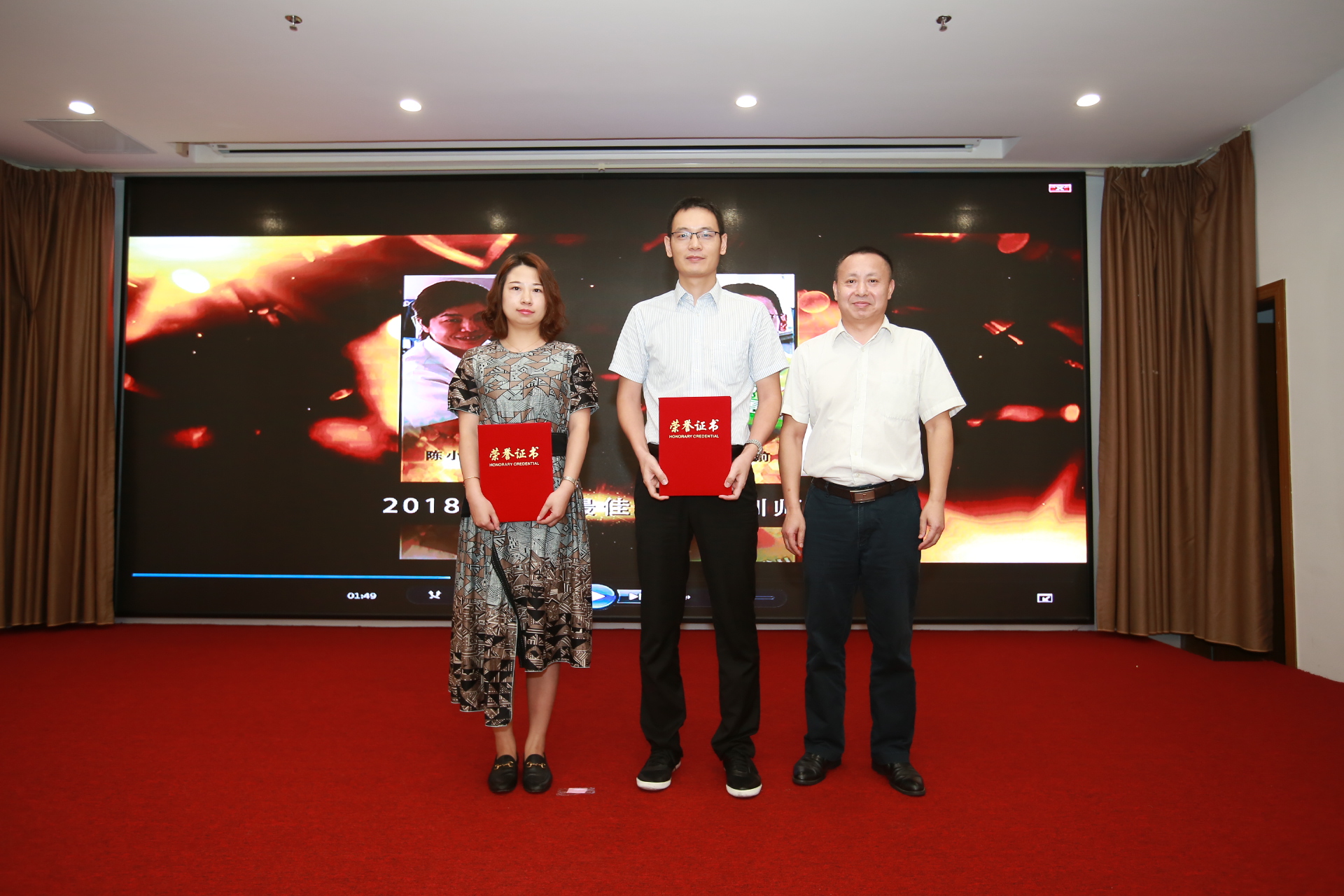 ▲公司黨委委員、副總經(jīng)理劉清明為受表彰的“最佳培訓管理員”頒發(fā)證書,獲獎個人分別為:機電公司袁亞凡、臺山分公司周健華、白鷺健康公司夏琦。
