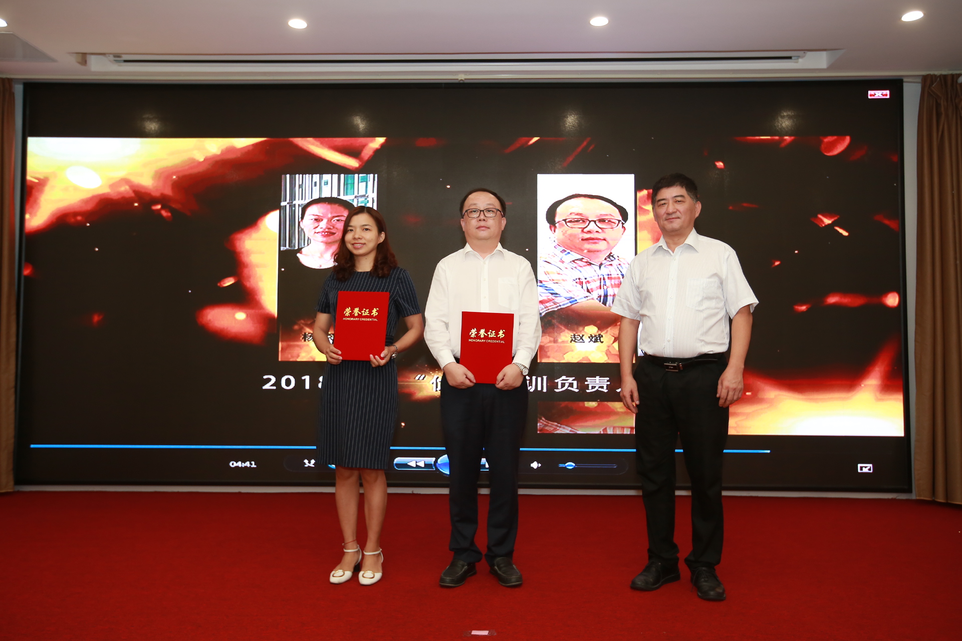 ▲公司黨委委員、總法律顧問楊光玉為受表彰的“最佳培訓課程”代表頒發(fā)證書,獲獎課程分別為:《防御性駕駛培訓》(基地事業(yè)部交通管理中心)、《公關(guān)接待禮儀培訓》(人力資源服務中心,白鷺健康公司)。