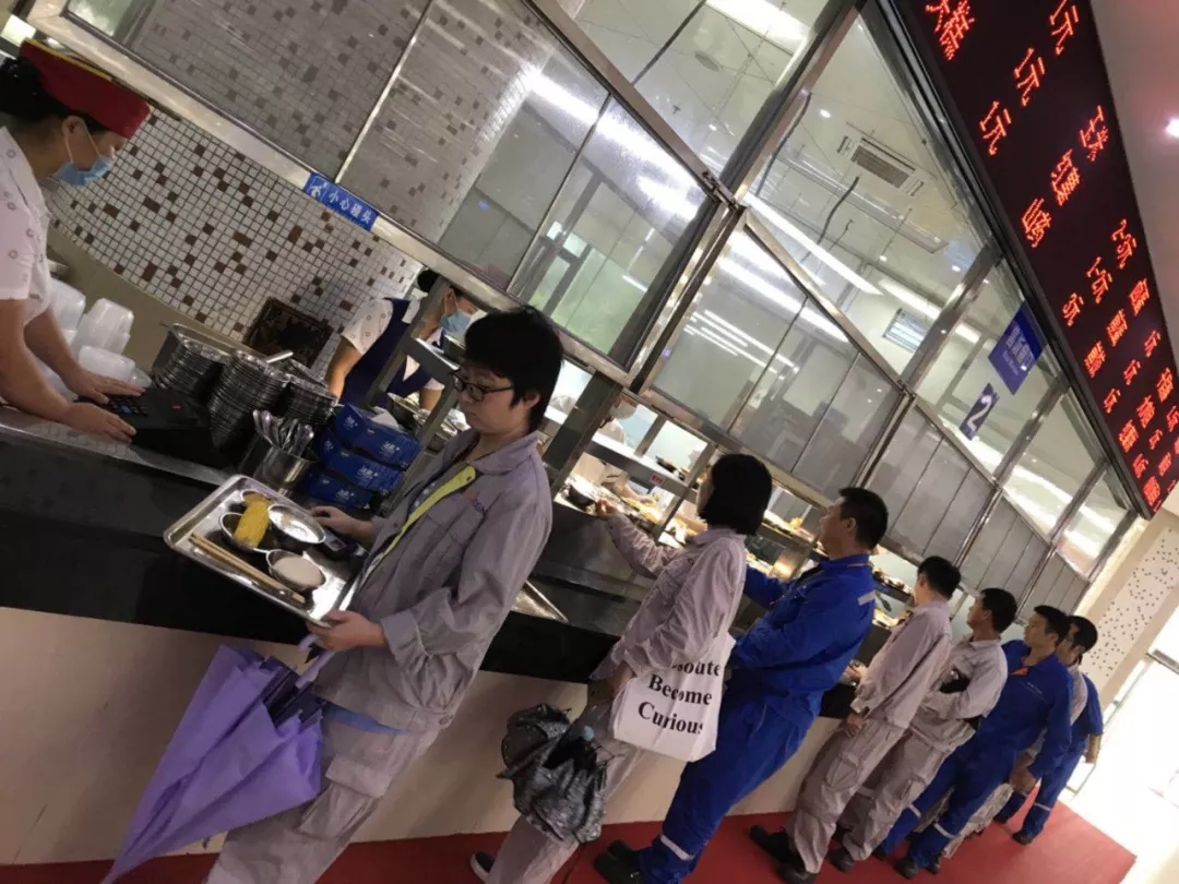▲臺(tái)風(fēng)后第一天,臺(tái)山分公司餐廳正常供餐,保證廣大員工吃上熱騰騰的可口早餐。
