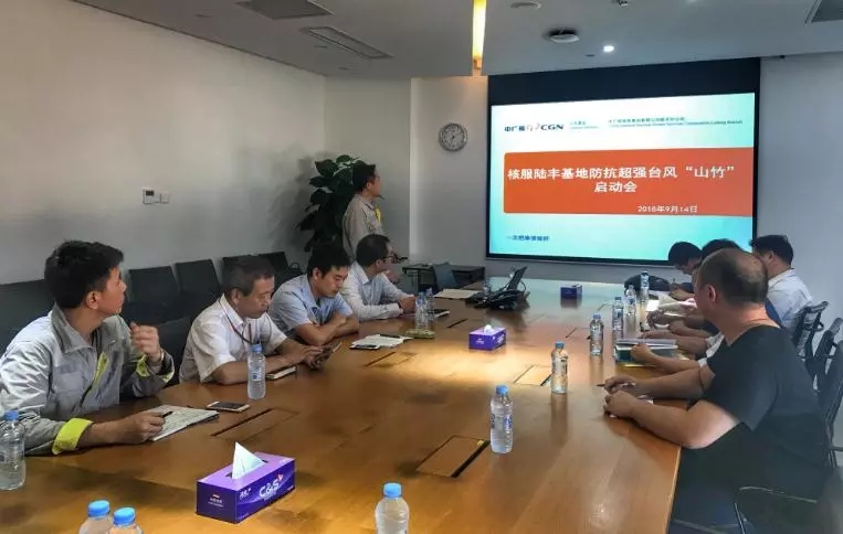 ▲臺(tái)風(fēng)登陸前夕,中廣核服各單位召開防抗超強(qiáng)臺(tái)風(fēng)“山竹”部署會(huì),做好各項(xiàng)應(yīng)急計(jì)劃。