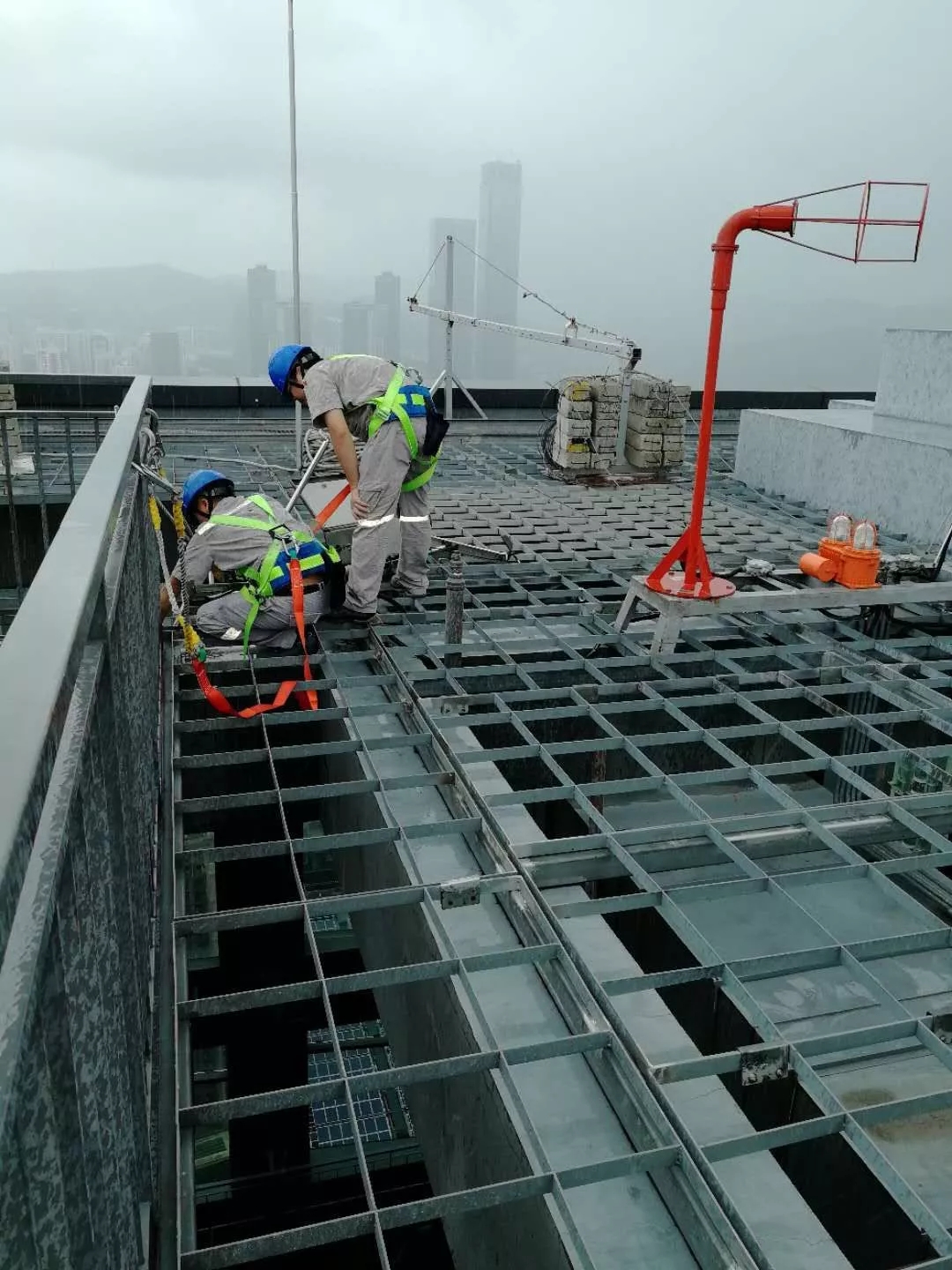 ▲臺(tái)風(fēng)登陸前夕,福田分公司物業(yè)員工認(rèn)真做好高空雜物清理,防止雜物墜落。