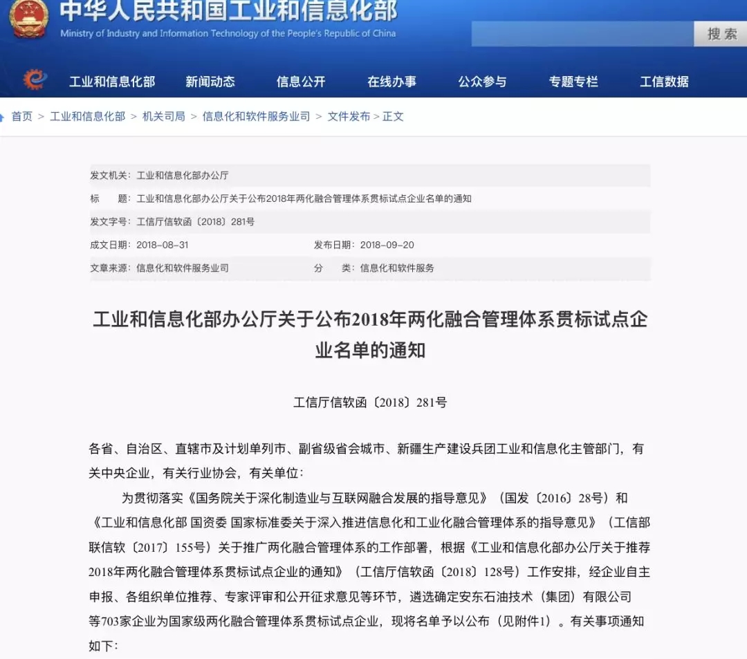 近日,國家工業和信息化部正式發出通告(工信廳信軟函(2018)281號),經過層層推薦和評審,中廣核服務集團(簡稱“中廣核服”)成功入圍國家兩化融合貫標試點企業。