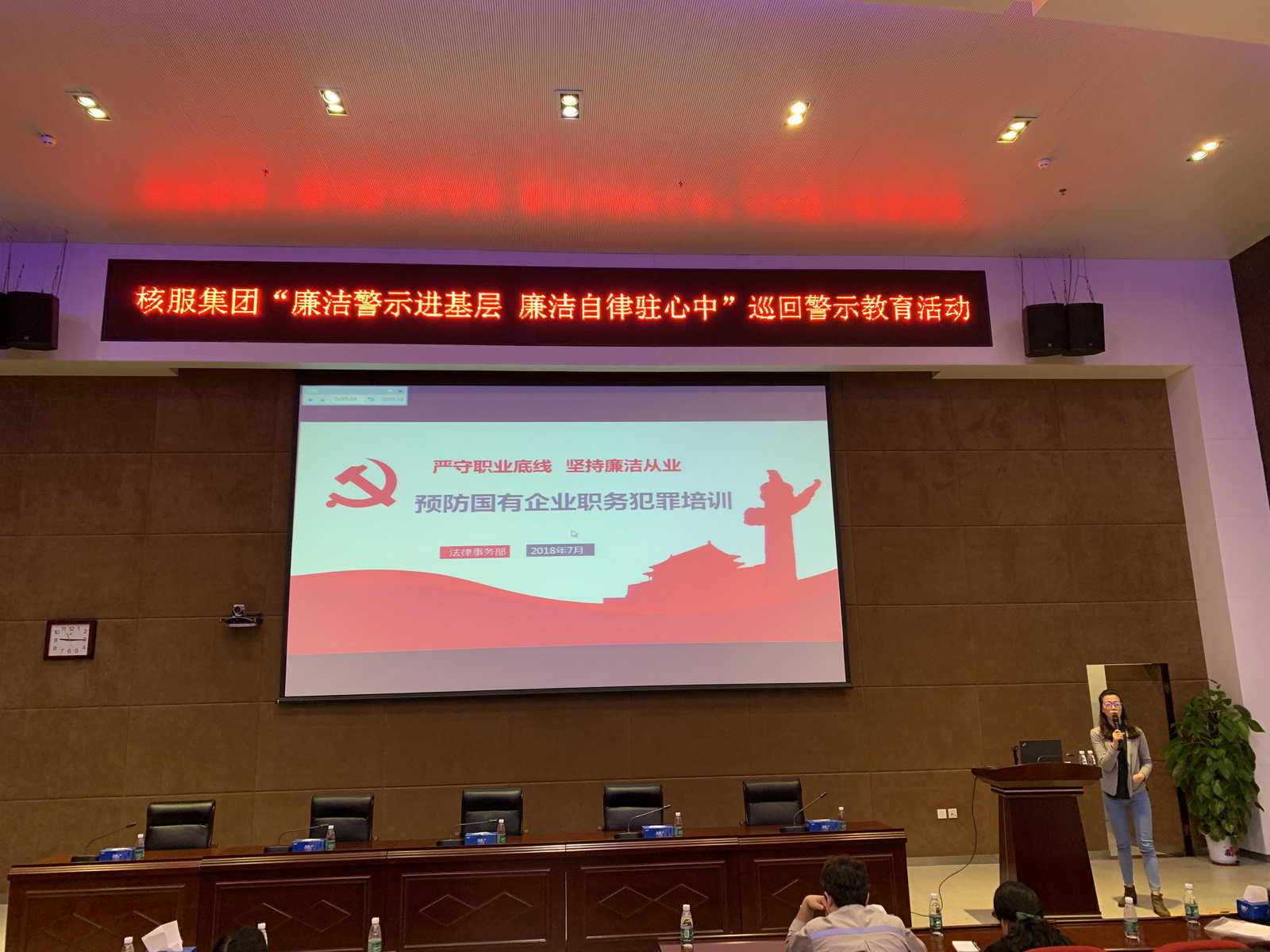 隨后,在廉潔警示教育環(huán)節(jié),郭永慧結合當前核服集團黨風廉政建設和反腐敗形勢,深入剖析“3.28案”等典型職務犯罪及違規(guī)違紀案件,深刻總結分析案件發(fā)生的主客觀原因,號召大家要嚴守職業(yè)底線,認真踐行“廉潔從業(yè)是個人和家庭幸福與事業(yè)長青的基礎”的公司核心價值理念。