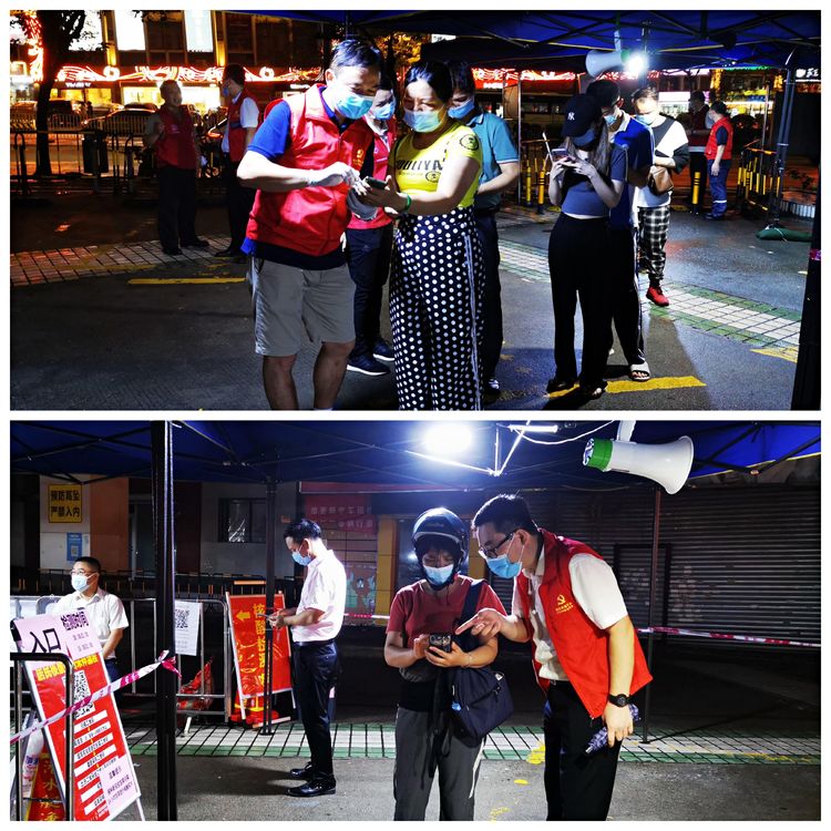 黨員志愿者與所有醫護人員、社區工作者們擰成一股繩,不辭辛勞、晝夜奮戰,全力做好場地布置、環境清潔、掃碼信息錄入、疏導群眾、維護秩序工作。三天里,共計完成核酸檢測采樣6000余人次,累計完成34個雨棚搭建,34盞照明燈安裝,80份通知橫幅的張貼懸掛,300個圍欄的固定……