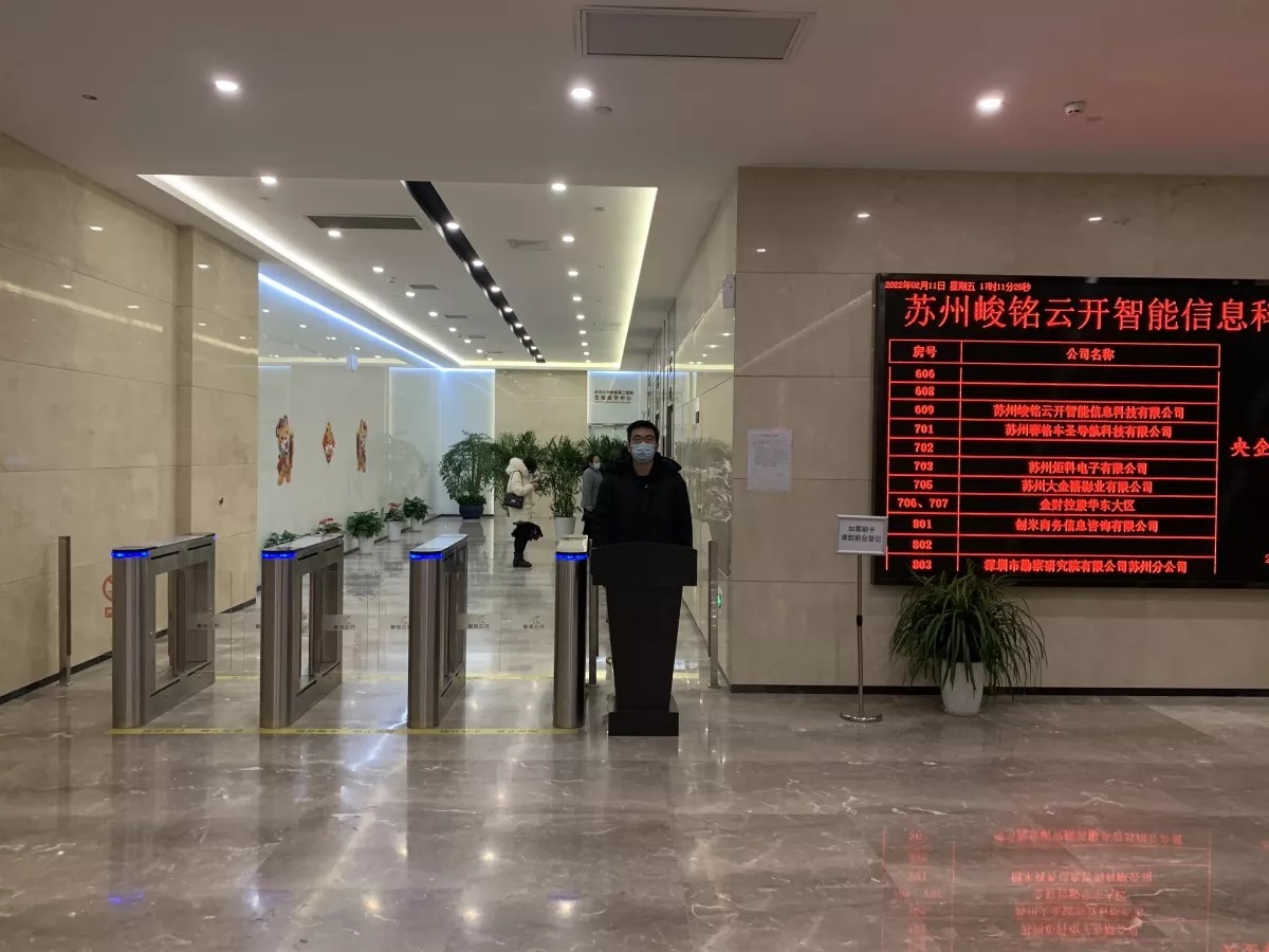 在正式入駐前,蘇州科技大廈管理處組織各模塊編制了詳細的承接工作計劃,為正式接管B座物業服務工作做了充分準備。春節前夕,管理處對各崗位員工進行了安全、技能培訓、應急演練等。開展了大堂等重點區域清潔,創造干凈的環境,同時,增加大堂前臺氣氛裝飾貼畫,營造濃濃的節日氛圍。春節后省外返蘇復工人員較多,為了嚴防疫情風險,從2月7日,開工以來,管理處組織骨干進行嚴格的疫情管控舉措,努力創建安全、有序、舒適的辦公環境,受到客戶的廣泛好評。