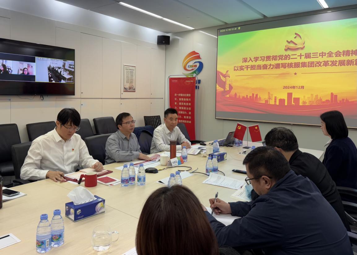 為深入學習貫徹黨的二十屆三中全會精神,教育引導廣大黨員干部深刻領會全會精神,以更加飽滿的熱情和斗志投身中廣核服綜合服務改革實踐,12月27日,共享服務公司物資采購中心黨支部在核電大廈311會議室開展主題黨日活動,中廣核服黨委委員、紀委書記鐘輝昌到會指導并講授專題黨課。共享服務公司臨時黨委委員、副總經理仇廣鑫主持會議。