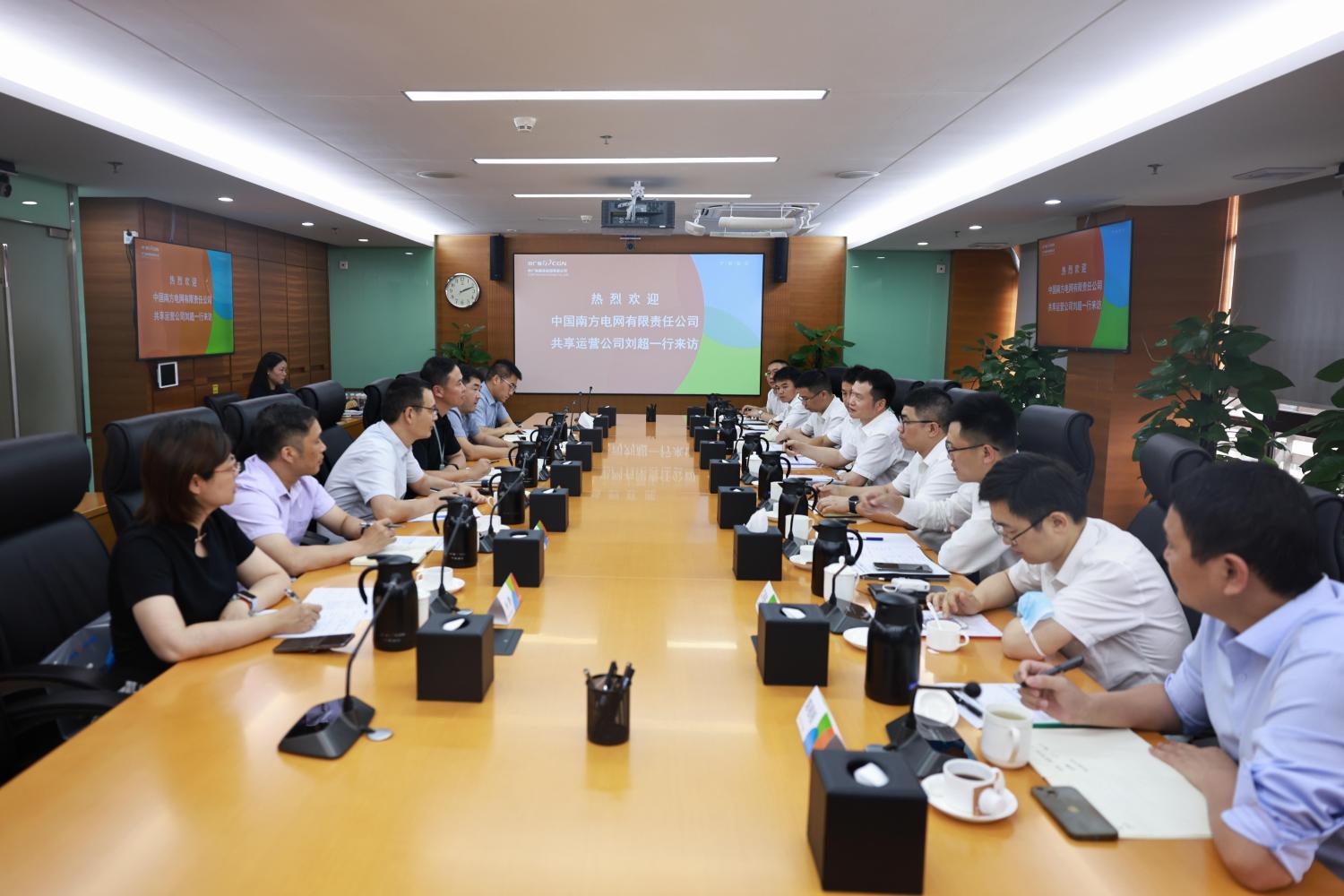 6月5日下午,南方電網共享運營公司劉超一行到中廣核服開展業務交流,中廣核服黨委委員、副總經理張志華出席交流活動。