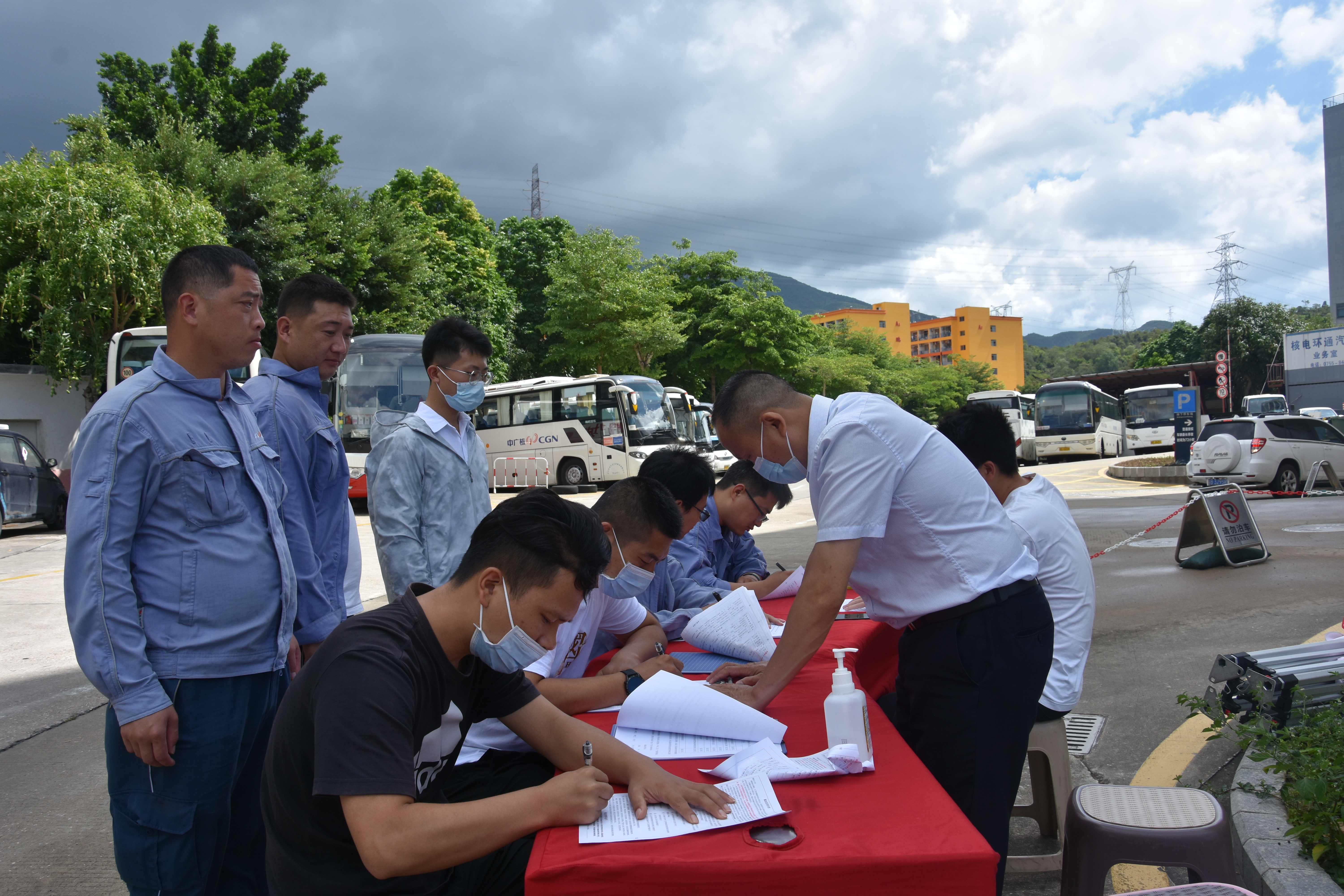 逐一進行體溫測量、信息登記